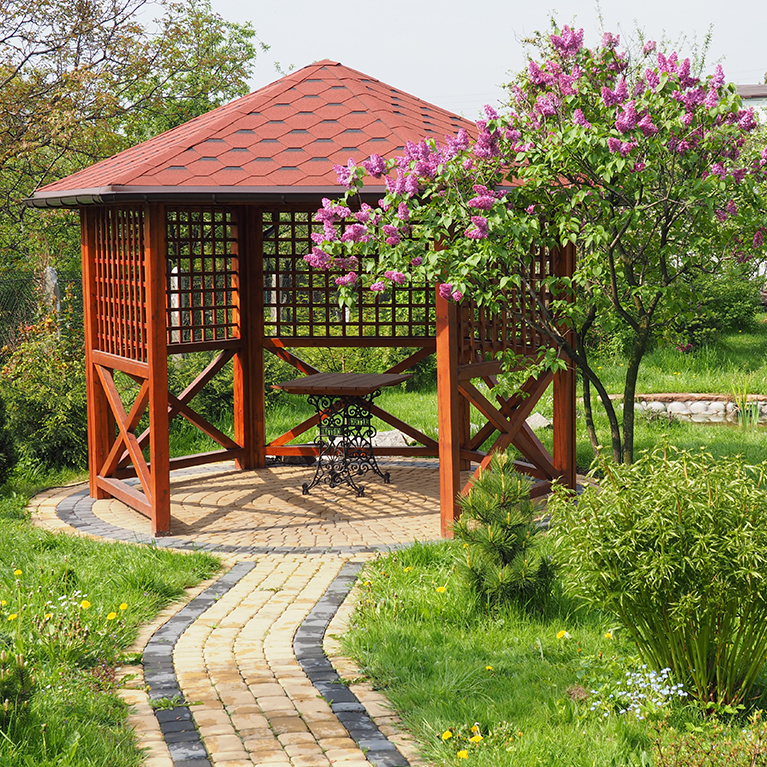 W ogrodzie oprócz stylu i listy roślin, dobieramy elementy wykończeniowe: tarasy, altany, pergole, kratownice etc.